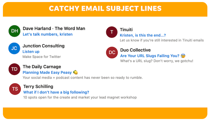 - Consider your subject line: That one line can often determine whether people open and read your email or send it to the trash.