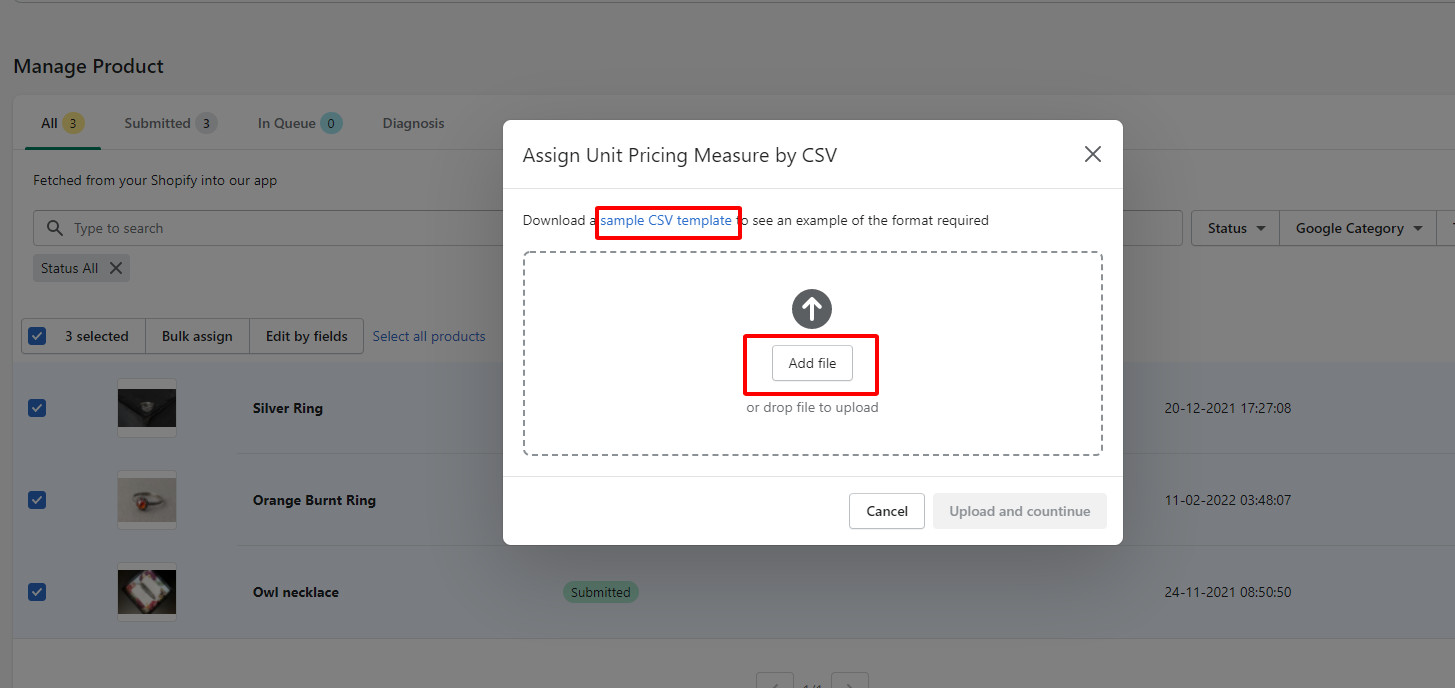 Step 2: Download the sample file and fill it in with the required field then upload again after that Also, you can easily set the unit price for a single product by editing it Now set the unit pricing measure and base measure for each variant, I bet the result on your Google Merchant account will surprise you.