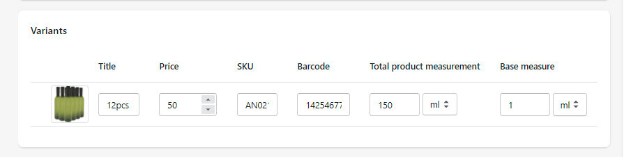 The unit_pricing_measure attribute contains information about how units of a product variant are measured. Together with a base measure, it’s used as an input to calculate unit prices (unit_price). If you use the unit pricing measure, then use the unit pricing base measure[unit_pricing_base_measure]attribute to include the denominator for your unit price. To make the unit prices more comparable for all ads and free listings on a page, your product might show a different base measure than what you provide here.