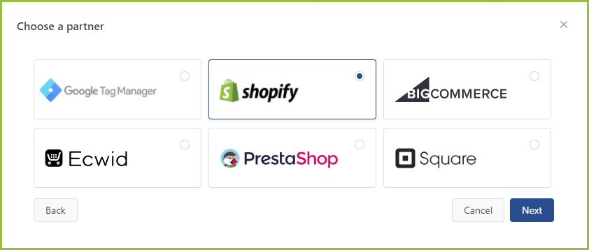 - Select Shopify after you click Install Pixel code by 3rd party tool, then choose Next.