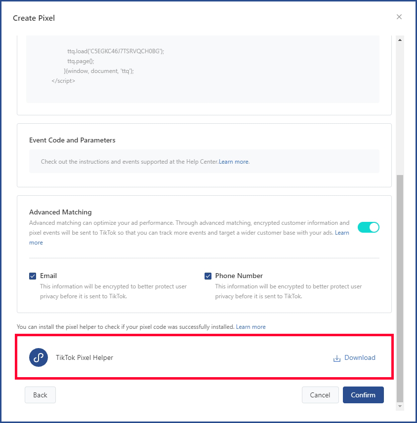 After finishing installing TikTok pixel, from TikTok Ads Manager, you can see the page showing an option to download TikTok Pixel Helper, click Download, a popup will appear, choose Download TikTok Pixel Helper or you can simply go to Chrome extensions.