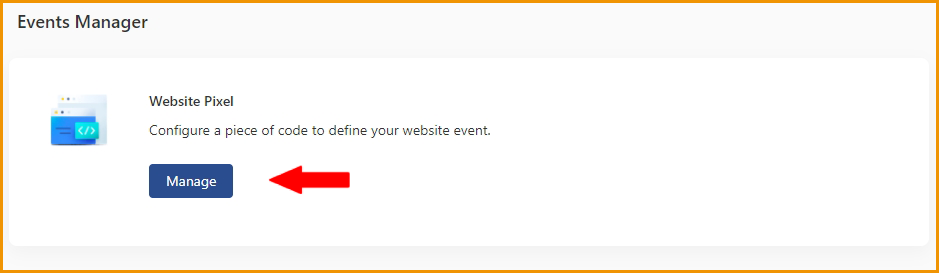 - Choose Website Pixel and click on Manage