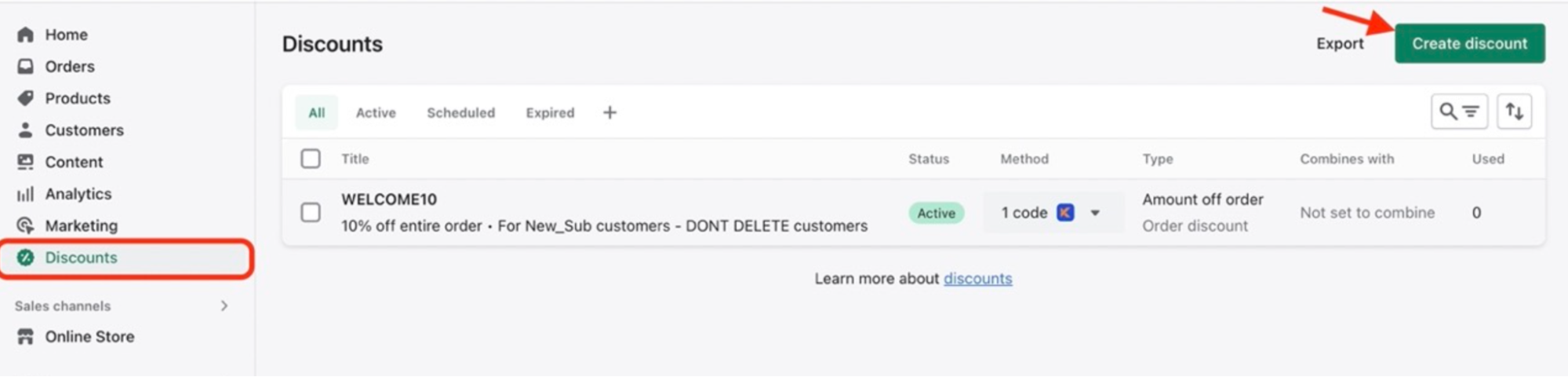 Discount codes are a great strategy to encourage purchases, so you might consider creating a few discount codes. To add a discount code to your store, go to “Discounts,” then name and create your discount code. If you prefer not to, you can skip this step.