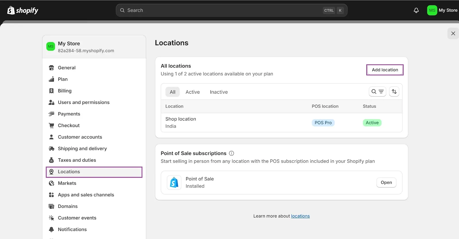 Ensure that the app reflects the POS Pro subscription for the locations you activated earlier.
