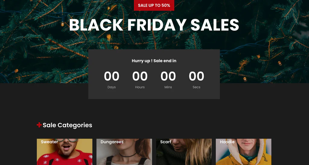 Select a Shopify theme designed specifically for sales events like BFCM. These themes are optimized for high conversion rates, fast loading, and feature sales-focused elements like large promotional banners, countdown timers, and urgency messaging.