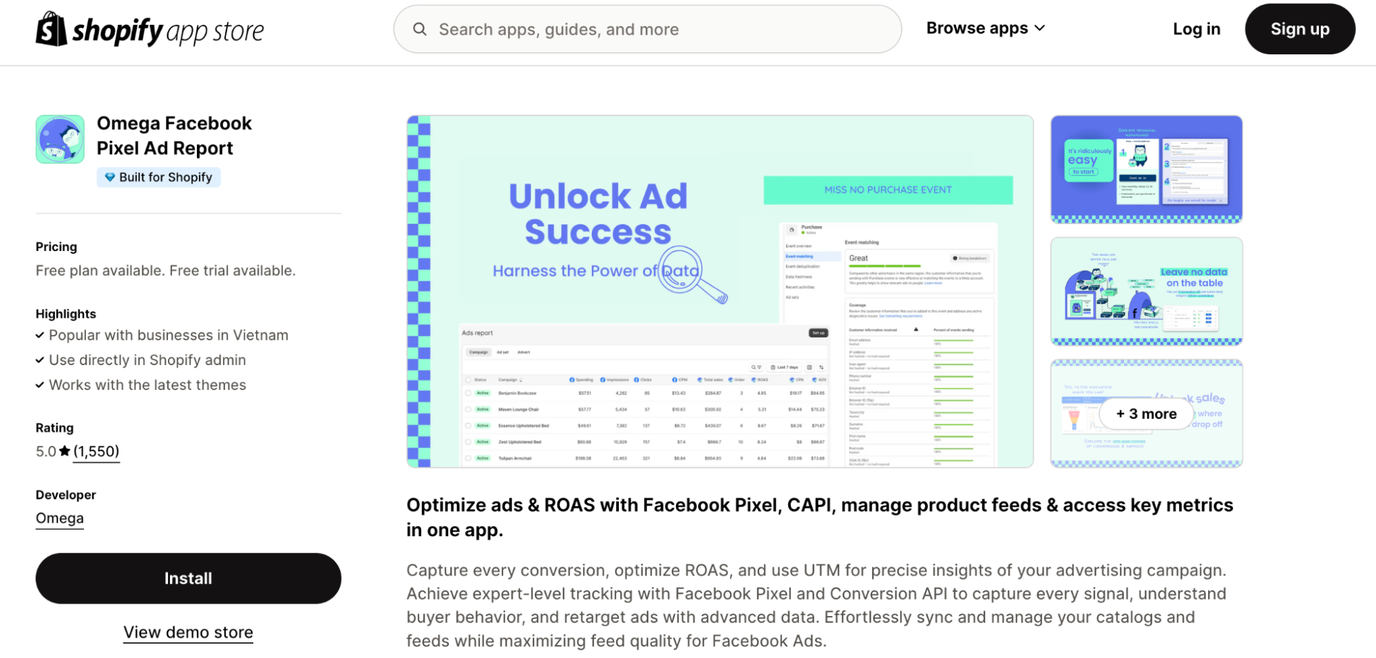 Optimize your ad performance with Omega Facebook Pixel & Ad Report, which tracks every conversion and provides clear UTM data. Its Facebook Pixel and Conversion API integration make it easy to understand customer behavior and retarget ads for better results.