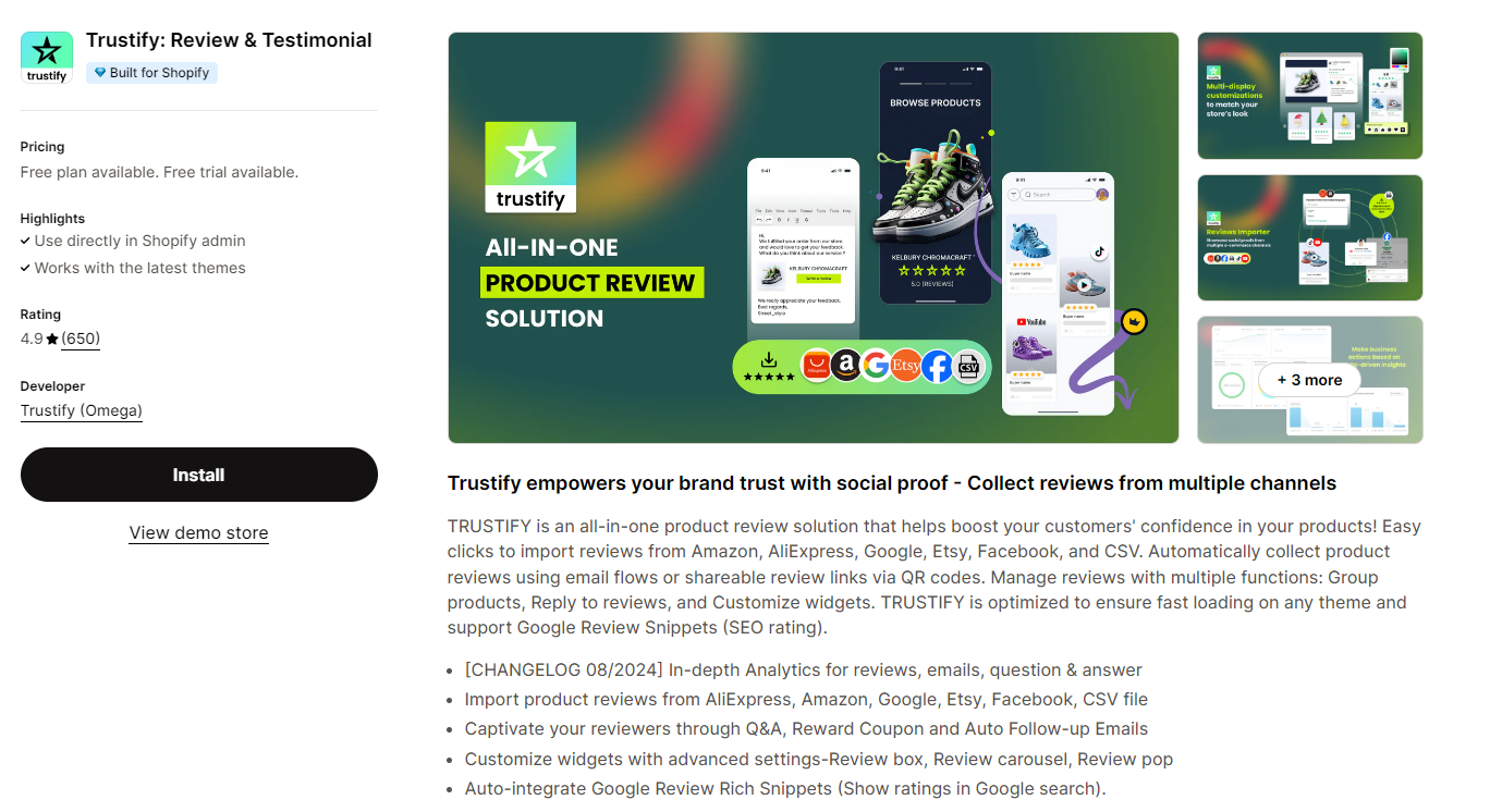 Install social proof apps like Trustify Reviews to show recent purchases or reviews on your store. Display customer ratings and reviews directly on product pages.