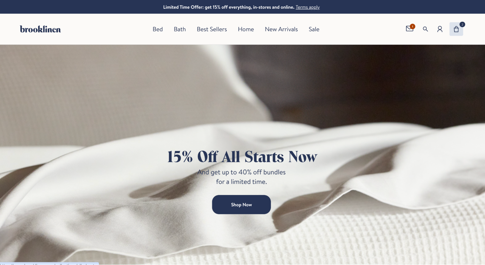 Renowned for offering high-quality bedding at affordable prices, Brooklinen has built a strong reputation in the Shopify space. The store focuses on providing luxury comfort without the premium price tag. In 2023, Brooklinen generated US$73.6 million in revenue, according to a report from ECDB, further solidifying its place as a top contender in the eCommerce bedding market.