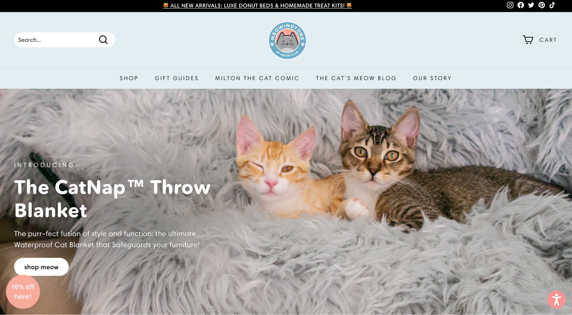 Meowingtons is a standout Shopify dropshipping store that caters specifically to cat lovers, offering everything from accessories to home decor. Their branding has successfully built a community of loyal customers who are passionate about cats. According to Dropship Launchpad’s data, the store generates approximately $3.6 million in revenue annually, making them one of the most successful niche dropshipping stores in the pet space.