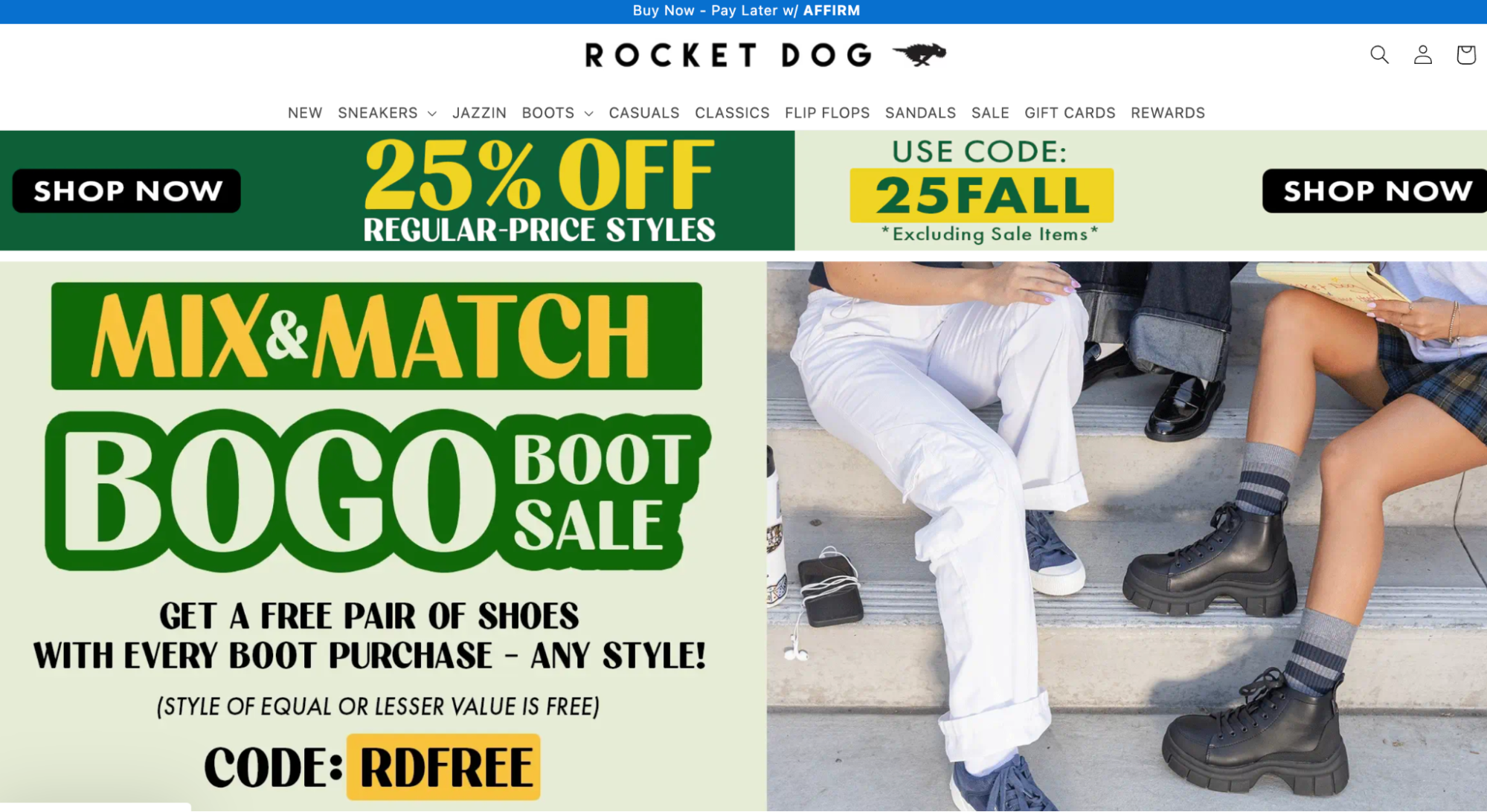 Rocket Dog is a Shopify store that focuses on casual and stylish footwear for women. Known for its laid-back, California-inspired designs, the brand offers a wide variety of shoes that blend comfort and fashion.