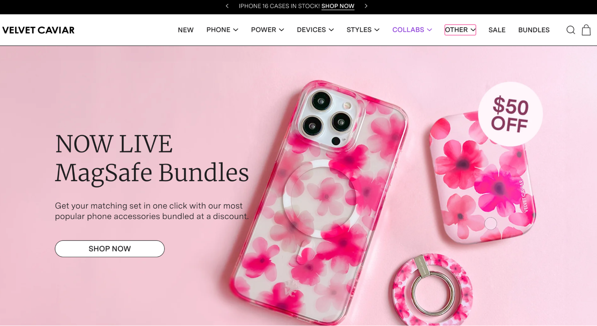Catering primarily to women, Velvet Caviar has become a go-to destination for stylish tech accessories. The store’s focus on trendy designs and a visually appealing website has helped build a loyal customer base.