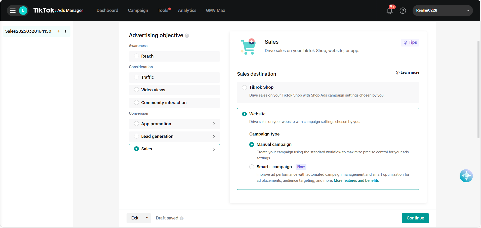 - Smart+ Web Campaign: Used to drive website conversions such as purchases or signups. TikTok optimizes delivery using Pixel data, so you don’t need to fine-tune every setting.